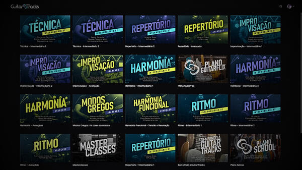 São mais de 600 aulas organizadas por Níveis (Iniciante ao Avançado) e Temas, incluindo: Repertório, Técnica, Harmonia, Improvisação, Ritmo, Tecnologia e muito mais!